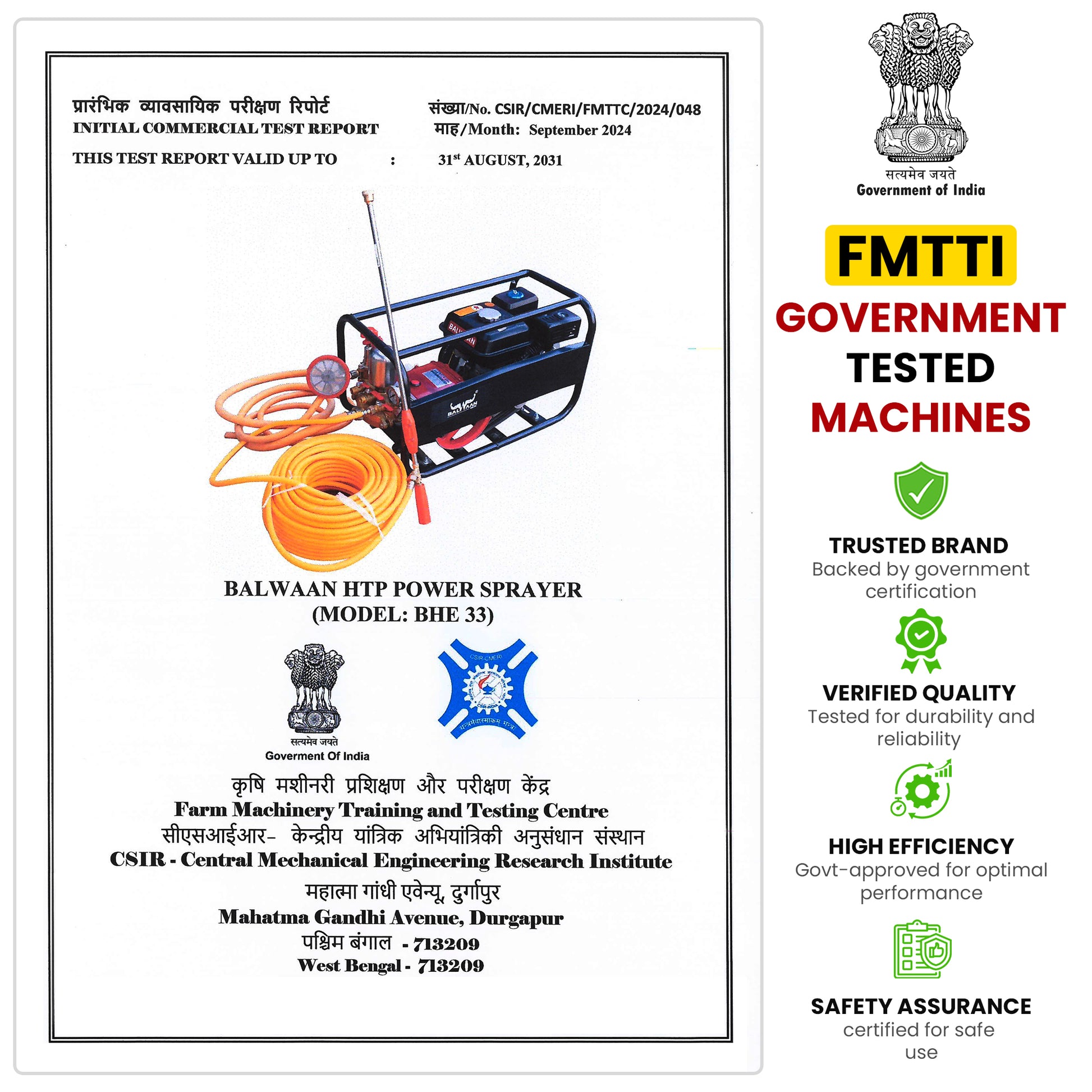 BALWAAN Krishi BHE-33 Portable HTP Power Sprayer for Agriculture with 6.5 HP 4 Stroke Engine for Gardening, Agriculture Use, Get Free 50 meter Hose Pipe, 1 Engine Oil Bottle & 2 Brass Gun|BHE 33