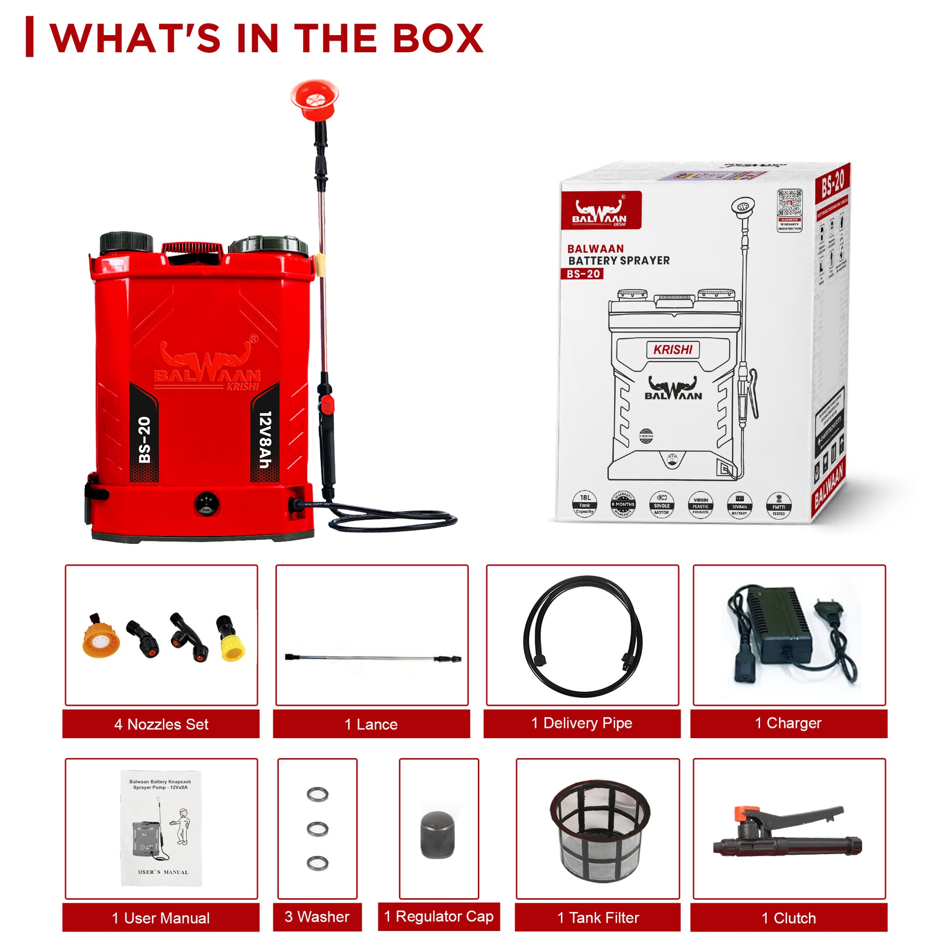 Balwaan Krishi Battery Sprayer (12x8) BS-20 | High Pressure up to 15 feet Spray