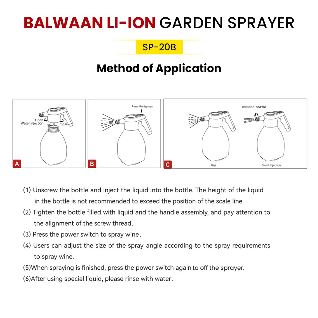 Balwaan Li-ion Battery Sprayer (2 Liters) SP-20B | Automatic Watering Can for Garden | Li-ion Battery Powered Spray Bottle | Useful in Irrigation & Pest Control in Farm