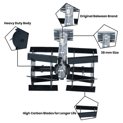 Balwaan Tiller Attachment 28mm Cross Type (14 Inch) (Silver)