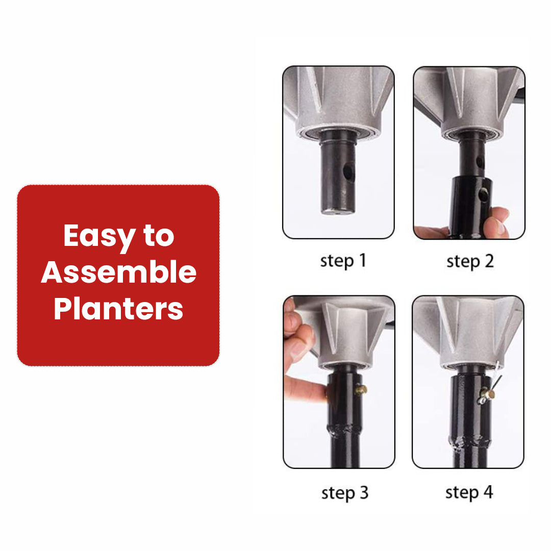 12 inches in width and 2.5 feet (30 Inches) in height. The planter is made up of strong metal. Along with this, it is Rust resistant and suitable for All models of Balwaan Earth Auger.