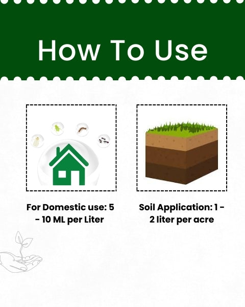 Soil Application: Soil application is effective against Root weevils, White grubs, and Termites (underground sitting/creeping insects). Mix 2 kg of M. anisopliae formulation with 150-200 kg of FYM /compost /well-decomposed organic manure. Spray some water for moisture and cover it with a polythene sheet. Remix the heap after 4 days and again cover the heap. This process should be done under shade. After the complete process (8-10 days), broadcast this mixture into a 1-acre field.