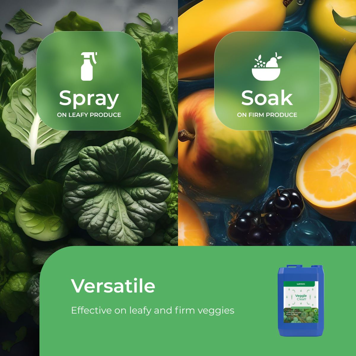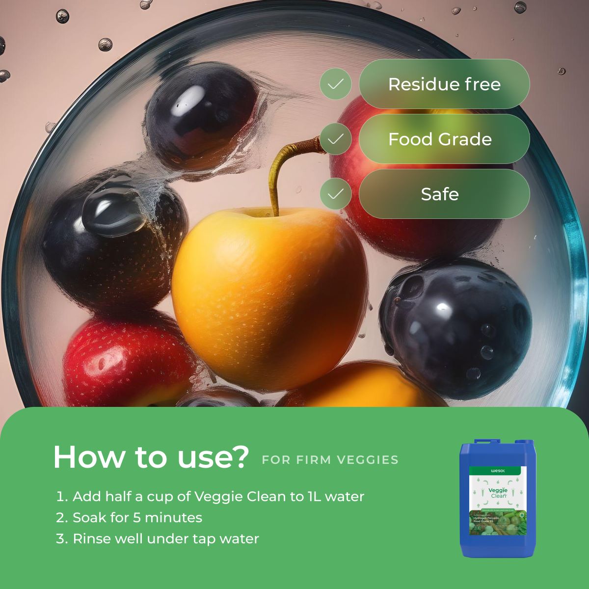 - PEACE OF MIND: Ensure the safety of your family, customers, and consumers by maintaining high standards of cleanliness and hygiene with Wesol Vegetable Wash Liquid Hydrogen Peroxide.